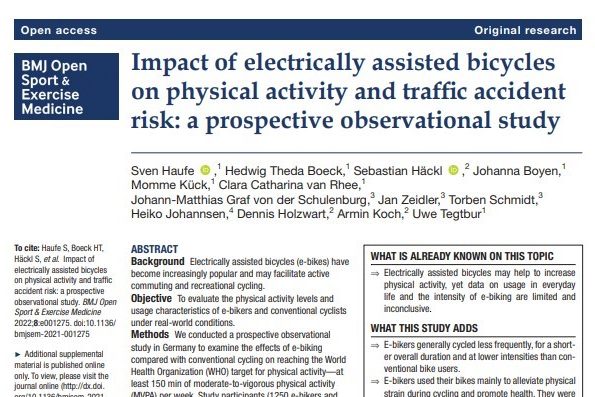 Am 11. Oktober 2022 sind unsere Forschungsergebnisse im Journal BMJ Open Sport & Exercise Medicine erschienen: Impact of electrically assisted bicycles on physical activity and traffic accident risk: a prospective observational study | BMJ Open Sport & Exercise Medicine Wir danken… … allen Probadinnen und Probanden für Ihre Teilnahme, die Aufzeichnung der Daten und…